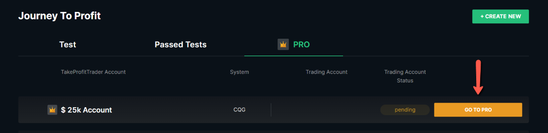 1. Start by signing in to your Take Profit Trader account. Once inside, head over to the PRO section. Click the Go to PRO button.